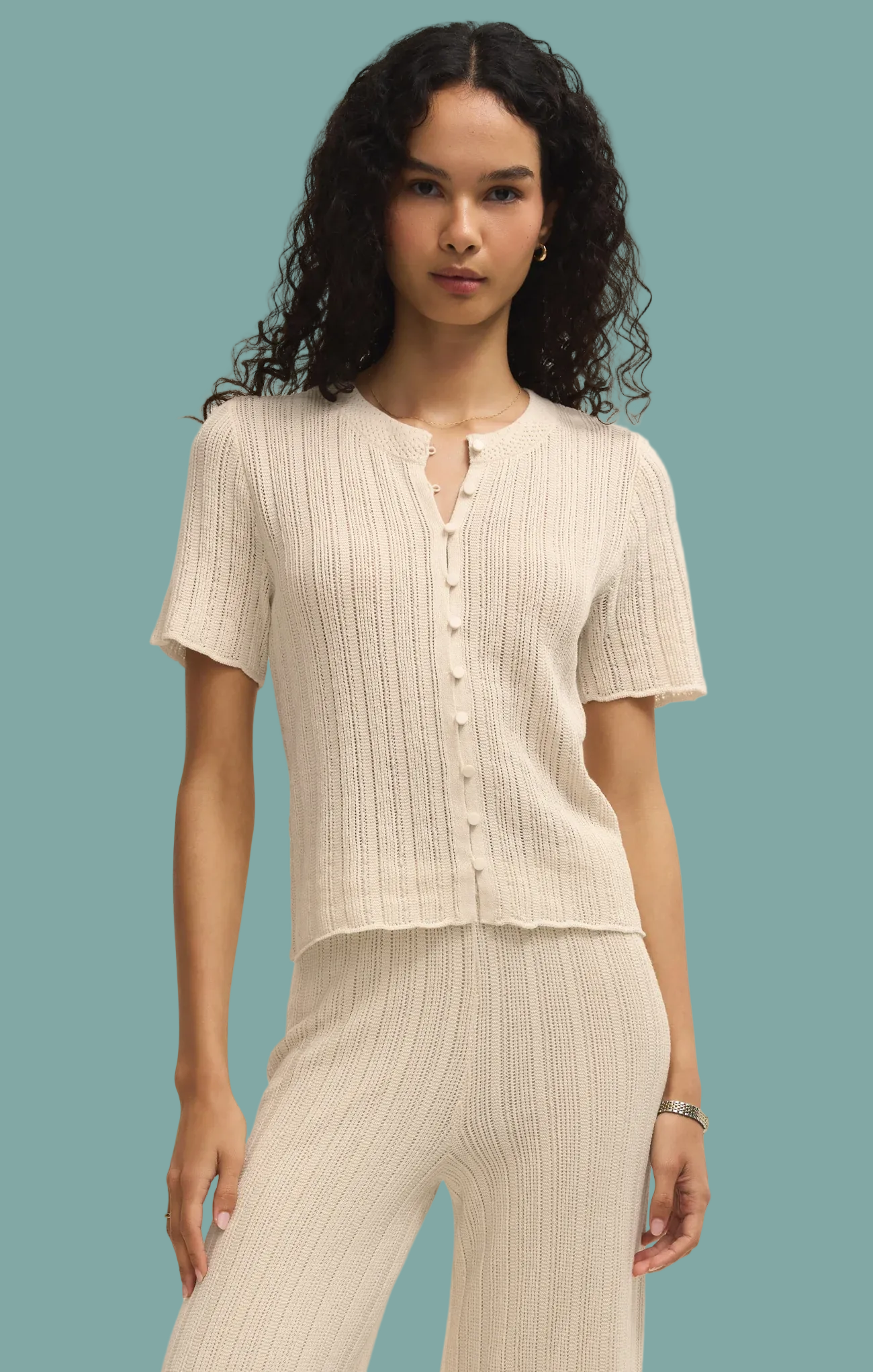Effortlessly chic, the Starboard Crochet Top combines breathable comfort with timeless style. Crafted from a sustainable cotton blend with recycled polyester, this lightweight short-sleeve top features delicate crochet texture and a charming loop button front. The crew neckline and regular fit work beautifully with denim or pair seamlessly with matching pants for that coveted coastal aesthetic. Finished with a soft, heavy wash for an instantly lived-in feel.