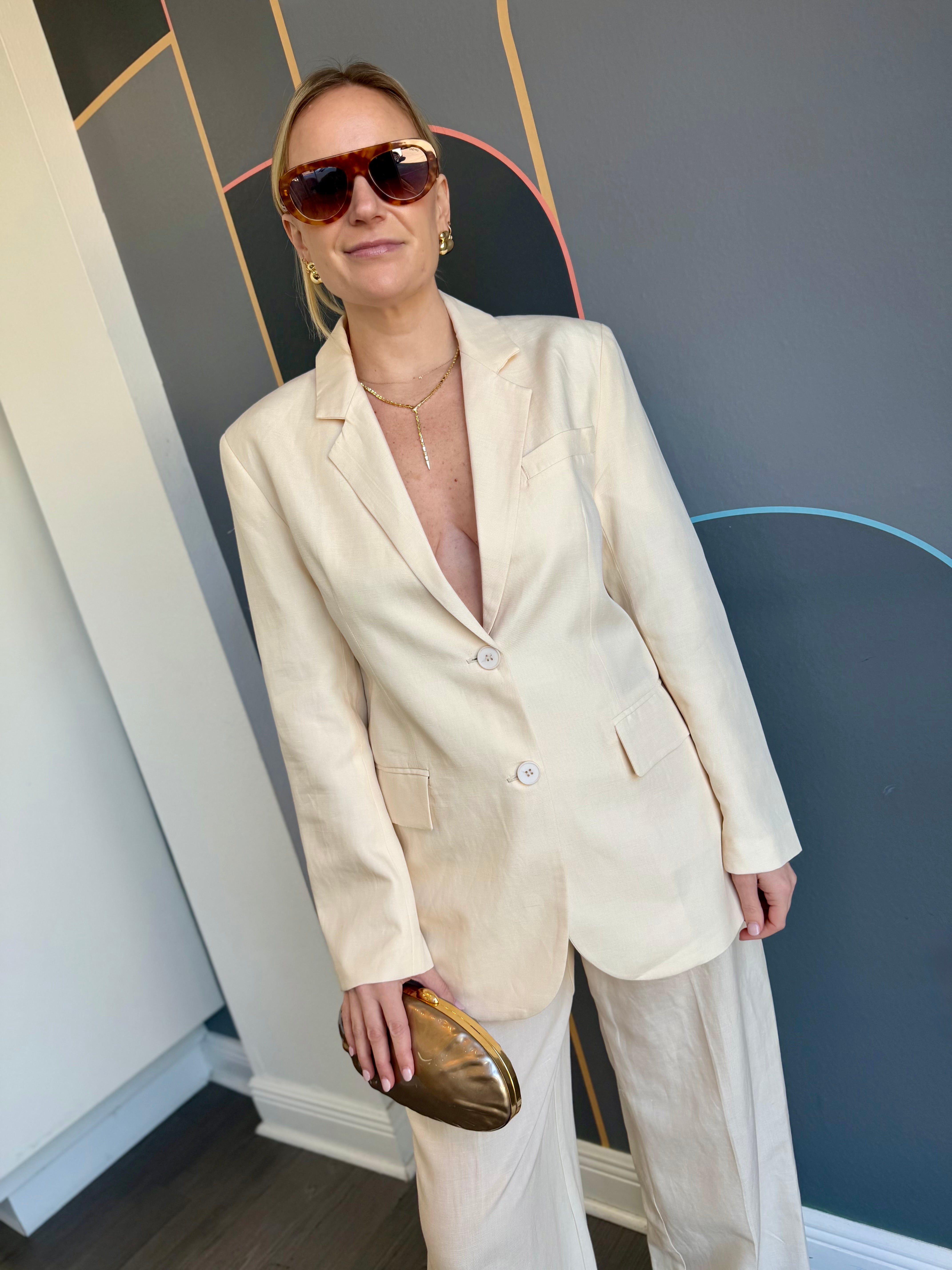 The Bari Blazer brings effortless sophistication to your everyday wardrobe. Crafted from breathable linen in a warm butter yellow, this single-breasted style transitions seamlessly from office to weekend plans. The relaxed drape of linen keeps you comfortable while the classic tailoring ensures you always look put-together. Perfect for layering over basics or wearing solo, this versatile piece is a wardrobe essential that works year-round.