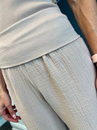Upgrade your beach style game with the Fold Over Waist Beach Pant in Sandy Sad. The elastic waistband allows for a comfortable fit, while the wide leg design adds a touch of classic elegance. Perfect for any occasion, dress it up or down for a versatile look.