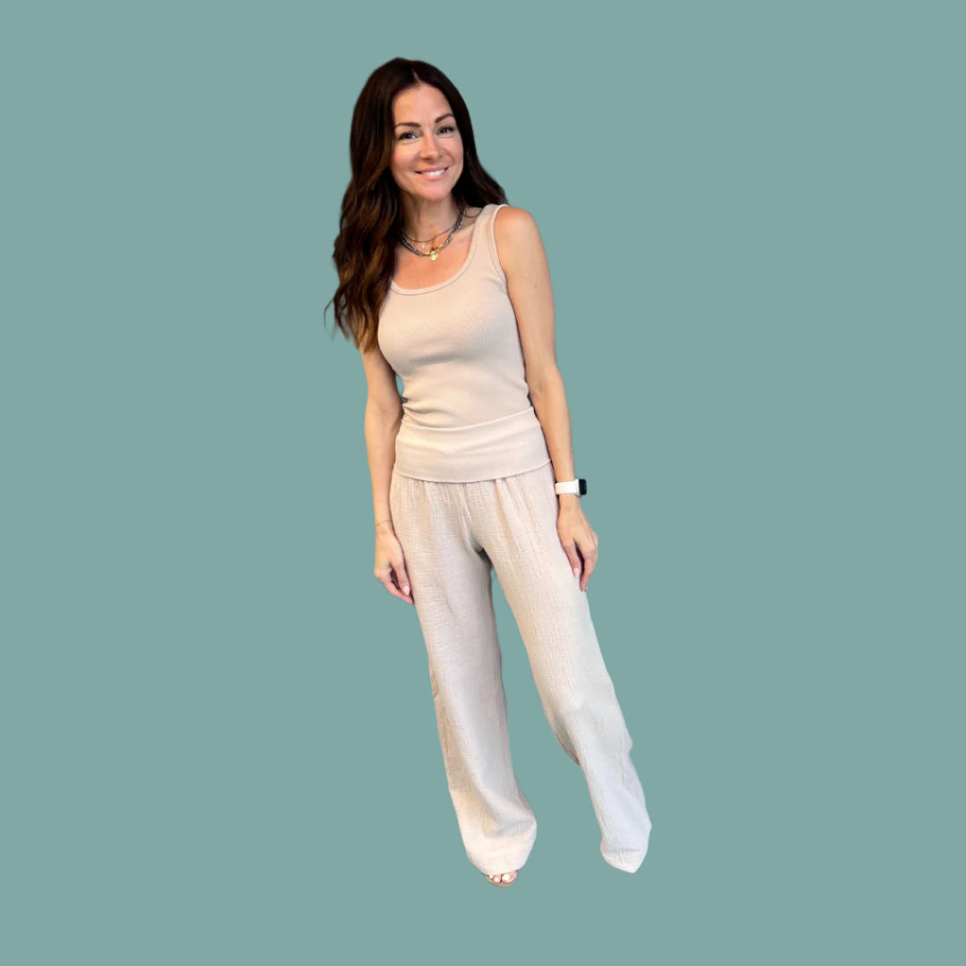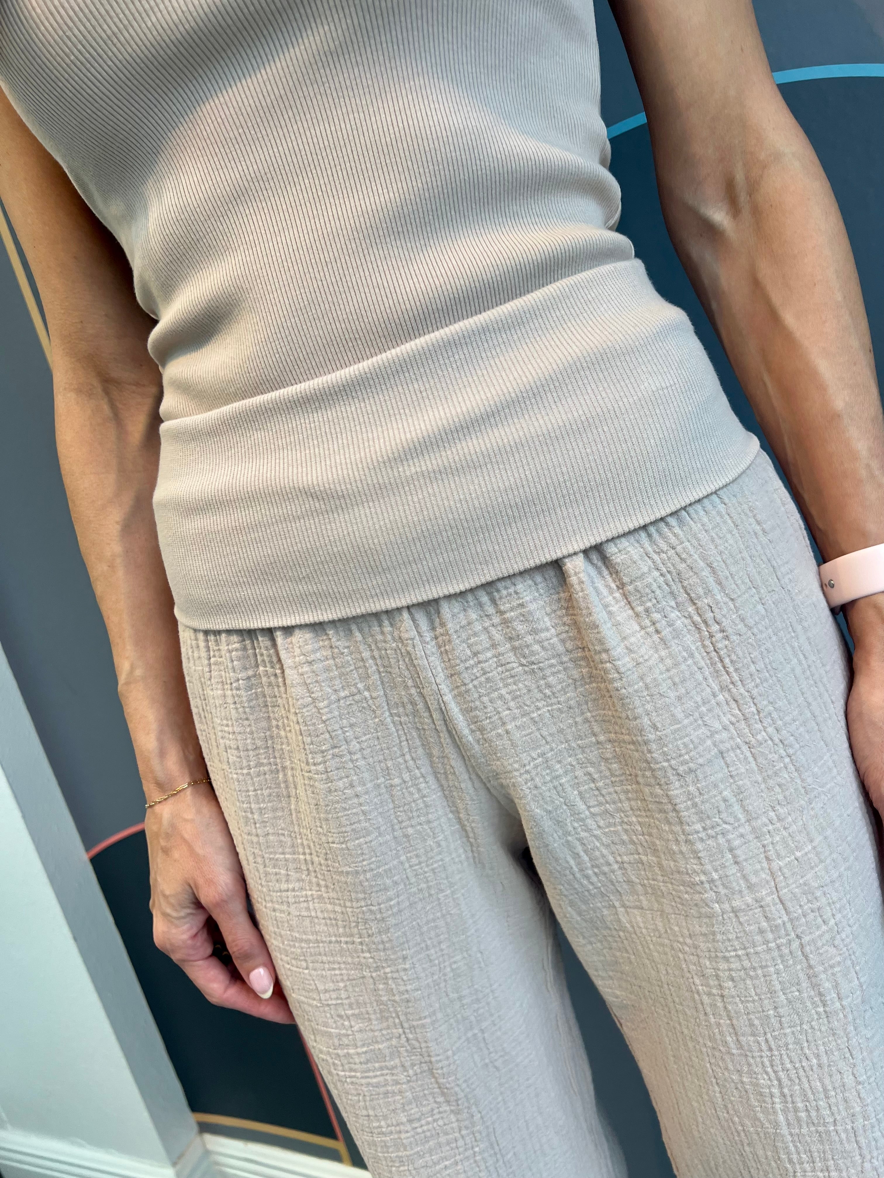 Pair with The Ribbed Scoop Neck Cropped Tank in Sandy Sad