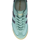 The Tornado Sneaker in Sea Mist and Plum blends classic style with a modern edge. Featuring a durable nylon upper with suede accents on the toe, heel, and lace area, it delivers both comfort and a vintage vibe. The eye-catching plum wingflash detail adds a unique touch, while the slight wedge gum sole provides subtle lift and everyday wearability. Perfect for casual looks, these lace-up sneakers bring the best of old-school flair to your wardrobe.