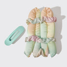 Unwrap healthier hair routines with our Holiday Wonderland-inspired heatless curling set Wrap, set, and style your strands with silky-soft satin for effortless curls and waves—without the heat damage. Extra large curling rods create a loose, bouncy style, while the claw clip and scrunchies hold the rod and your hair in place.