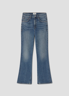 Made from soft, stretchy regenerative cotton denim, they offer all-day comfort with a vintage vibe thanks to their medium indigo wash and subtle fading. The slim fit through the hips flares gently at the hem, creating a flattering silhouette that pairs perfectly with your favorite knit or tee. True to size and easy to care for, these jeans are your new go-to for playful, laid-back looks.