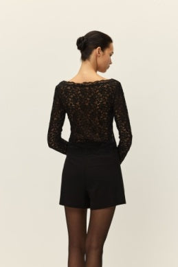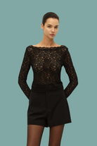 Stay chic in the Alma Lace Top with its boat neck and intricate black lace design. Made with a comfortable blend of 92% nylon and 8% spandex, this long sleeve top is perfect for any occasion. Elevate any outfit and feel confident in this must-have piece.
