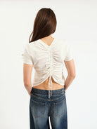 The Soul Ties tee is a short-sleeved T-shirt with a ruched back tee — an everyday basic, elevated.