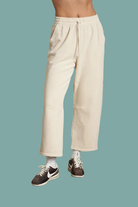the fallon pant is made from heavy fleece and designed to be the sweatpant that has it all. with side pockets, a pull-on waist with natural drawcord tie, and a barrel leg that tapers into a straight, slightly cropped finish, this bottom is equal parts practical and flattering.