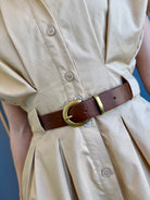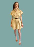 Effortless style meets comfort in the Priscilla Dress. This mini shirt dress features relaxed dolman sleeves and a flattering kiss pleat detail for movement and dimension. The khaki and brown color combination offers versatile styling options, while the contrast belt cinches the waist for a polished silhouette. Perfect for casual outings or dressing up with accessories, this piece transitions seamlessly from day to night.