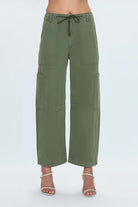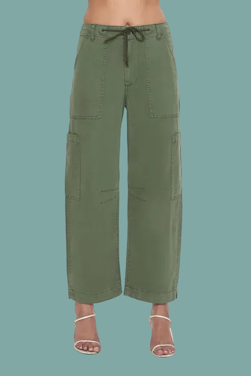 Utility, with a feminine edge. Sabrina delivers a flattering take on utility with a curved wide leg, front patch pockets, and an easy drawstring waist. The cropped 27" inseam shows just the right amount of ankle, while the soft 100% cotton fabric moves with you. Finished in Meadow, a rich green that pairs effortlessly with neutrals or prints.