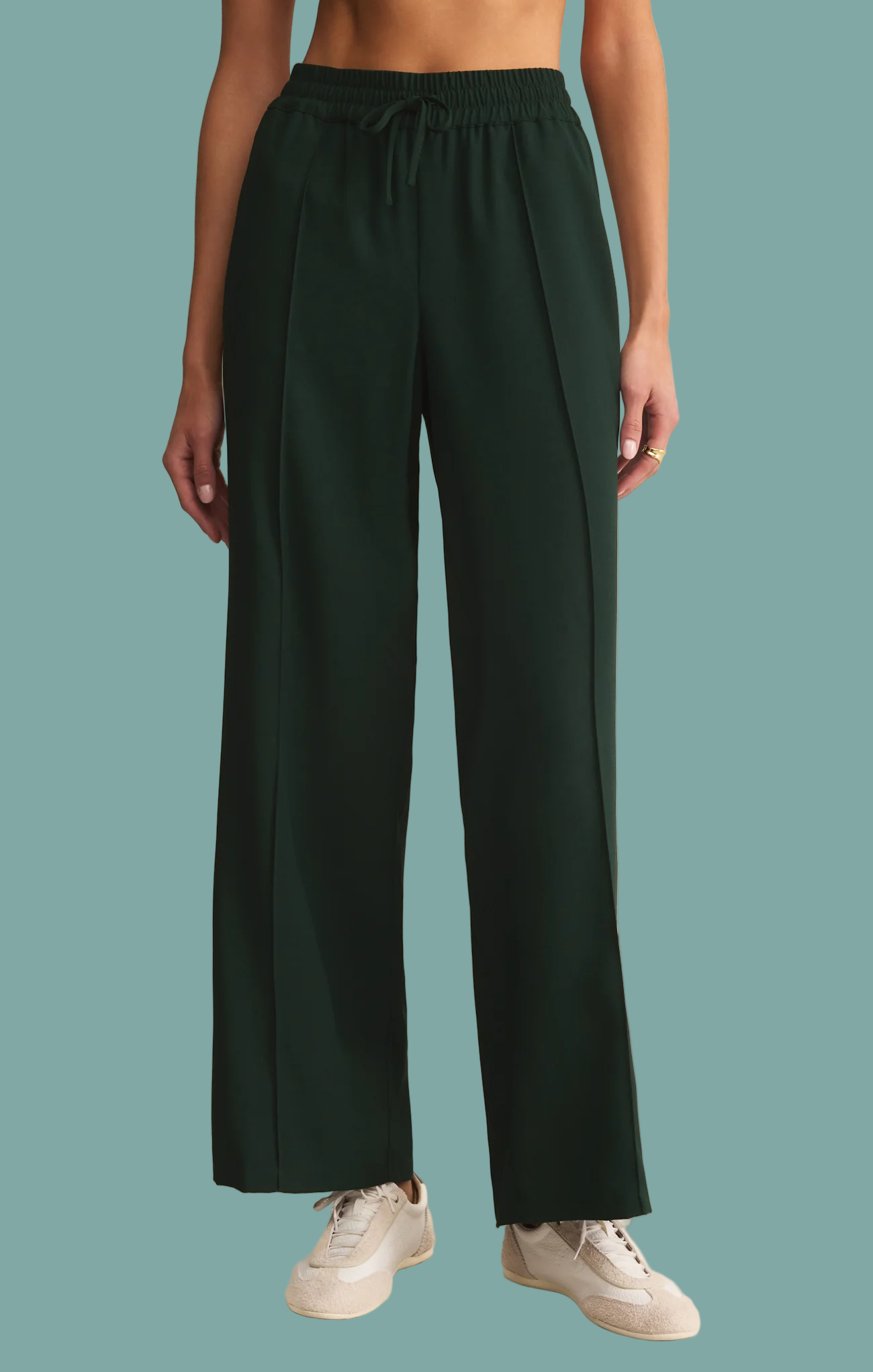Effortlessly chic and supremely comfortable, the Saunder Track Pant delivers laid-back style for any occasion. Crafted from breathable crinkle woven crepe with a soft, heavy wash, this high-rise silhouette features a relaxed wide-leg cut and gentle drape that moves with you. Contrast stripe detailing at the seams adds visual interest, while the elastic waistband and slash pockets keep things practical. Perfect for everything from casual days to weekend adventures.
