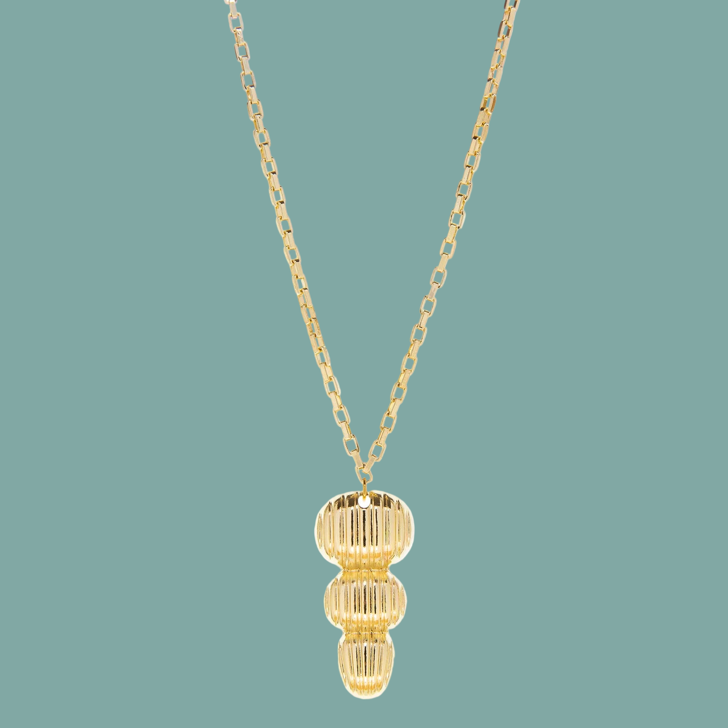 Beautiful fluted dome pendant on a long box chain necklace. Wear alone as a statement or layer away!