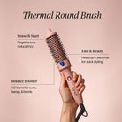 Effortlessly style your hair with the 1.5”/38 mm ceramic barrel of this Volumizing Thermal Brush. Its lightweight design and nylon bristles make for easy handling while adding volume, shape, and shine while reducing frizz. Suitable for all hair types and lengths, this brush will give you salon-quality results in less time and with less heat damage. The single heat setting ensures your hair is styled without excessive heat exposure, making it a must-have for dry hair. *Non-US customers may need an adapter.