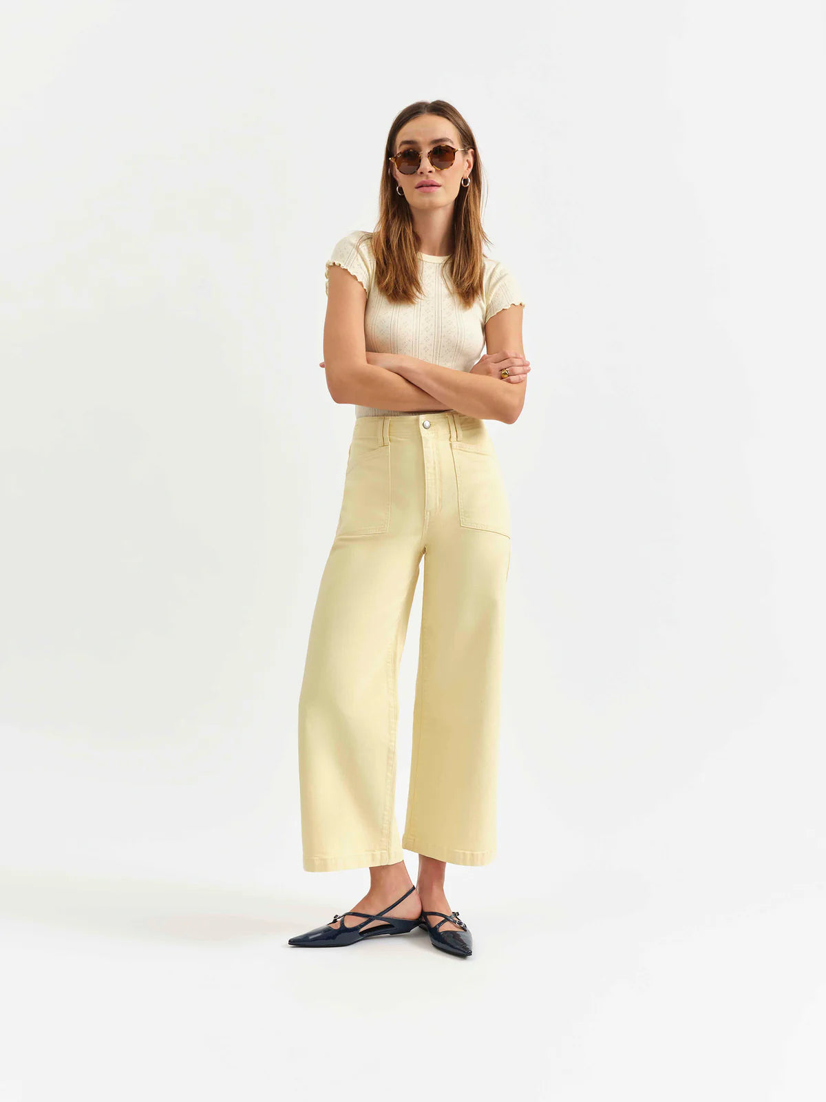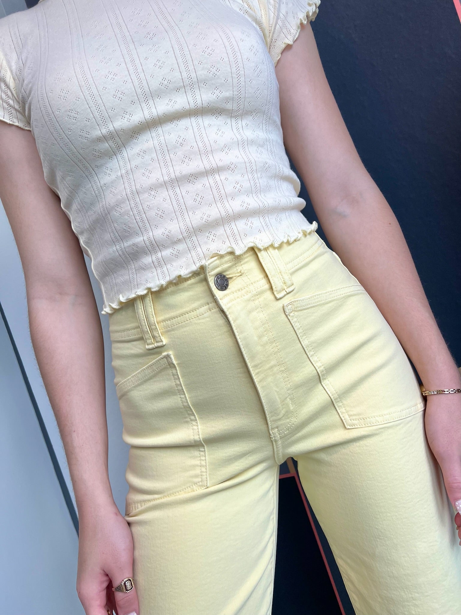 Join the cool kids with Valley Girl Jeans in Sunny. High rise, retro pockets, and a sunny yellow wash in Tough Love fabric that holds its shape while hugging your body. Save water and look hot in 65% cotton, 34% organic cotton, and 1% elastane.