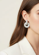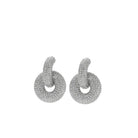 Rendezvous Drops feature a stunning stainless steel base with silver plating and intricate CZ pave detailing that catches the light beautifully. These elegant post back earrings measure 2" in length and 1½" in width, making them the perfect statement piece that's still comfortable for all-day wear. Versatile enough for casual outings or special occasions, they add just the right amount of sparkle to any look.