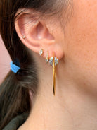 Elevate your everyday look with this understated gold hoop that packs a punch of sparkle. A delicate circle diamond sits right at the post, catching light with every turn of your head. Perfect for layering or wearing solo, this piece strikes that sweet spot between minimal and glamorous—just enough shine to feel special without trying too hard.