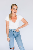 The Midland V-Neck Bodysuit is your new wardrobe essential. Crafted from luxuriously soft 100% Pima cotton, this versatile piece layers seamlessly under everything from blazers to sweaters or stands alone as a chic basic. The flattering V-neckline adds subtle sophistication while the premium fabric ensures all-day comfort and durability. A timeless foundation piece that works as hard as you do.