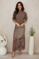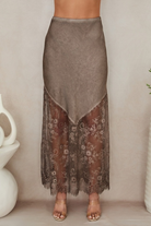 Effortless elegance meets everyday comfort in this viscose maxi skirt. The flowing fabric drapes beautifully while the delicate lace hem adds a touch of feminine detail. Perfect for dressing up or down, this versatile piece transitions seamlessly from day to night. Choose between classic black or rich chocolate to match your personal style.