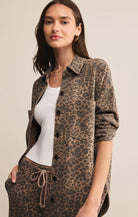 This cotton French Terry shirt jacket brings a soft, lived-in feel with a playful leopard print that stands out. Finished with a button front and patch pockets, it’s the perfect layer to throw on for a little extra edge on cooler days.