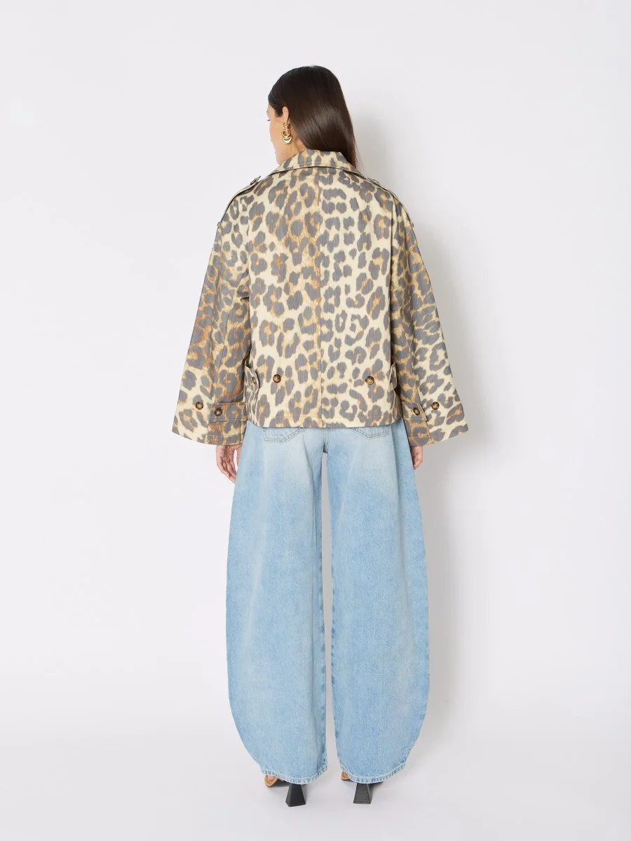 The trench MURIEL is a piece that embodies the timeless elegance of French fashion, while adding a bold touch thanks to its print leopard. This trench revisits a classic with a modern and oversized cut. Made from cotton, it is both light and durable, ideal for mid-season days. Its double breasted and cuff straps add details that enhance the style and ensure an unforgettable look.