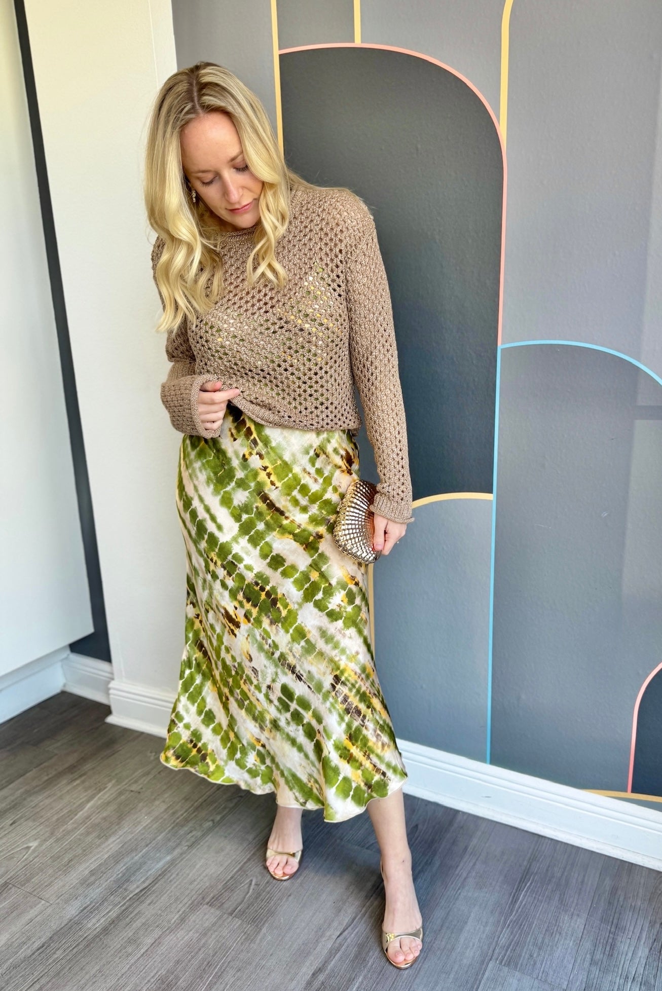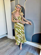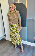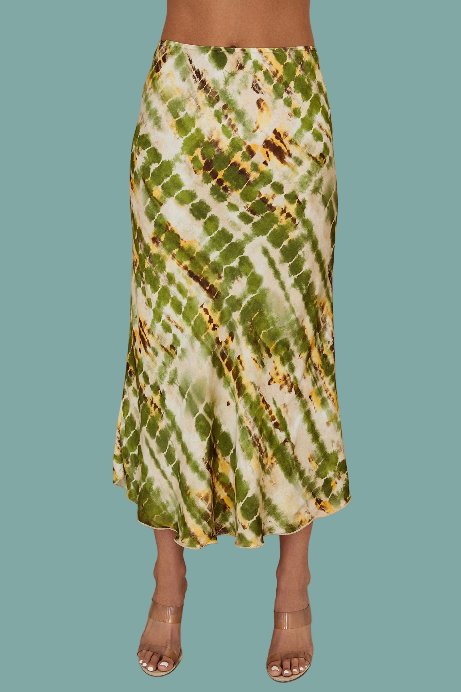Slip into effortless style with this silky tie dye midi skirt, featuring a dreamy blend of green, yellow, and soft brown tones. The smooth, luxurious fabric drapes beautifully against your skin, while the midi length offers versatile wear for any occasion. Perfect for layering over basics or pairing with your favorite crop top, this unique tie dye pattern adds a laid-back vibe to your wardrobe. Comfortable, chic, and endlessly wearable.