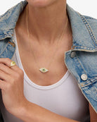Embrace positive energy with Melinda Maria's Green Evil Eye Necklace—your stylish shield against negativity. This eye-catching pendant channels protection, strength, and courage while making a bold fashion statement. The vibrant green hue adds a modern twist to this timeless symbol. Wear it solo for impact or stack it with your favorite pieces to create a personalized look that reflects your unique vibe. Perfect for anyone seeking both spiritual meaning and contemporary style.