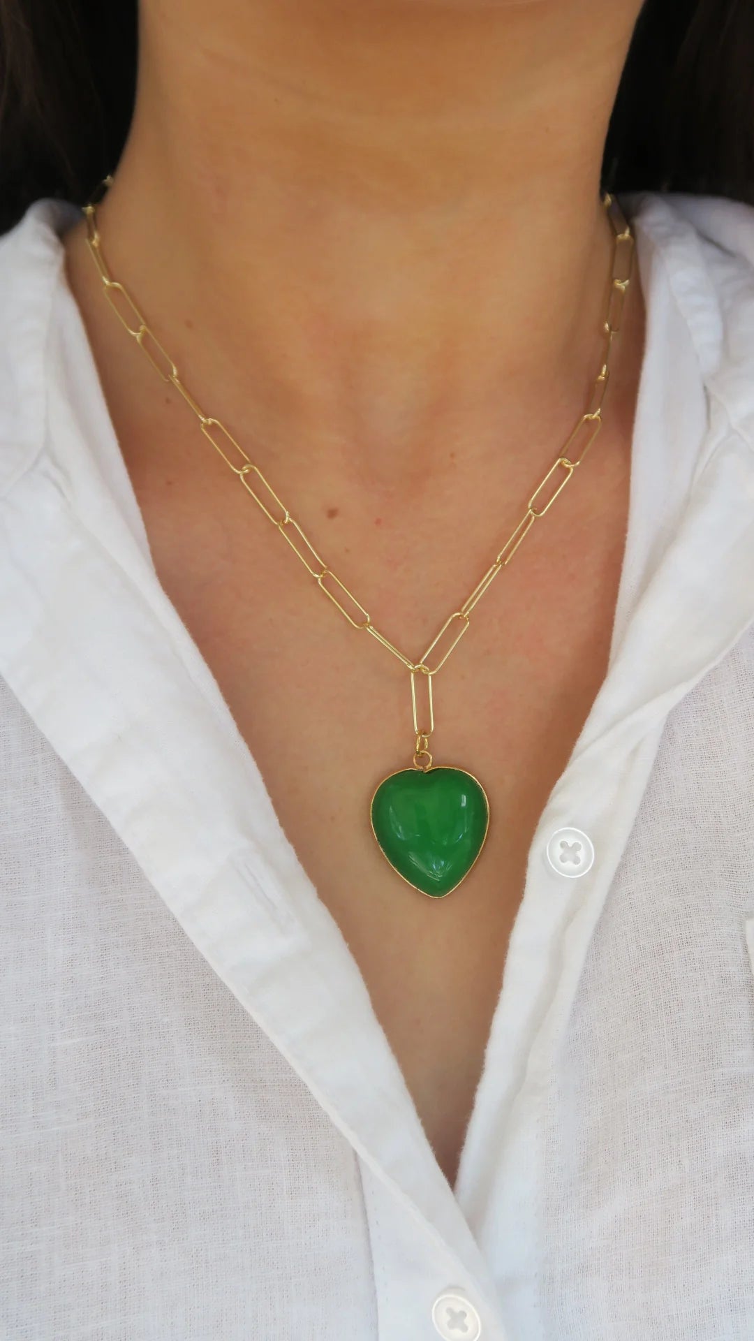 Elevate your everyday style with the Knox Charm Necklace, featuring a striking 1" flat-backed enamel heart charm that makes a bold statement. Crafted with a lustrous gold-plated paperclip chain and secured with a reliable lobster clasp, this 18" necklace offers the perfect blend of durability and sophistication. Layer it with your favorite pieces or wear it solo for instant charm and personality.