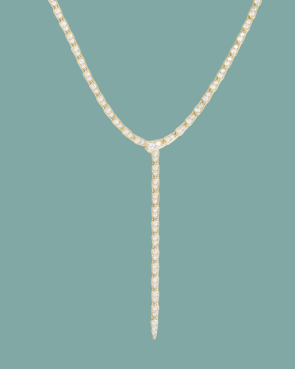 Sleek, striking, and dangerously good. This Pavé Serpent Lariat Necklace features snake-like links and a dazzling pavé finish that commands attention. Versatile enough for low-cut necklines or understated elegance, it delivers edge with every wear. A piece that bites in all the right ways.