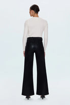 The Lana High Rise Ultra Wide Leg Jean makes a bold statement with its dramatic wide-leg silhouette and relaxed fit. Sitting high on the waist, it features a full-length 33" inseam that flows effortlessly with every step. Made from our signature comfort stretch denim in Coated Noir, these jeans offer a rich black finish with a sleek, textured look that’s perfect for elevating any casual outfit.