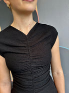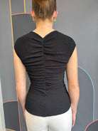 Black crinkled texture center ruched top