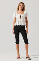 Feel flirty and fun in the ASTR the Label Darlene Top! This puff-sleeved peplum top features a smocked bodice for a flattering fit, and tie front bows add a playful touch. In crisp white, this top is perfect for any occasion.