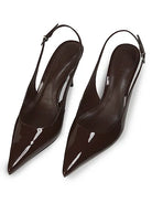 The Paola Patent Pump from Schutz combines sleek style with comfort. Made from shiny patent leather, these slingback pumps feature a pointed toe and an adjustable gold-tone buckle for a secure fit. With a 3.5-inch heel, they add just the right height for everyday wear. The leather lining and sole provide durability and a smooth feel, making them a versatile choice for casual outings or dressier occasions.