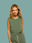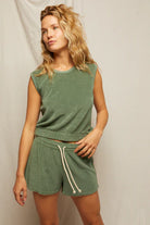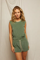 The Ellie Loop Terry Tank in Aloe brings back all the best memories. Crafted from soft loop terry fabric, this sporty tank features a higher scoop neckline and muscle sleeves for a relaxed yet playful vibe. The fitted ruched waistline adds a flattering touch, so you can skip the tucking and keep the good times rolling. Proudly made in California, it’s your new go-to for effortless fun and comfort.