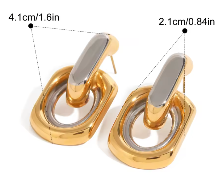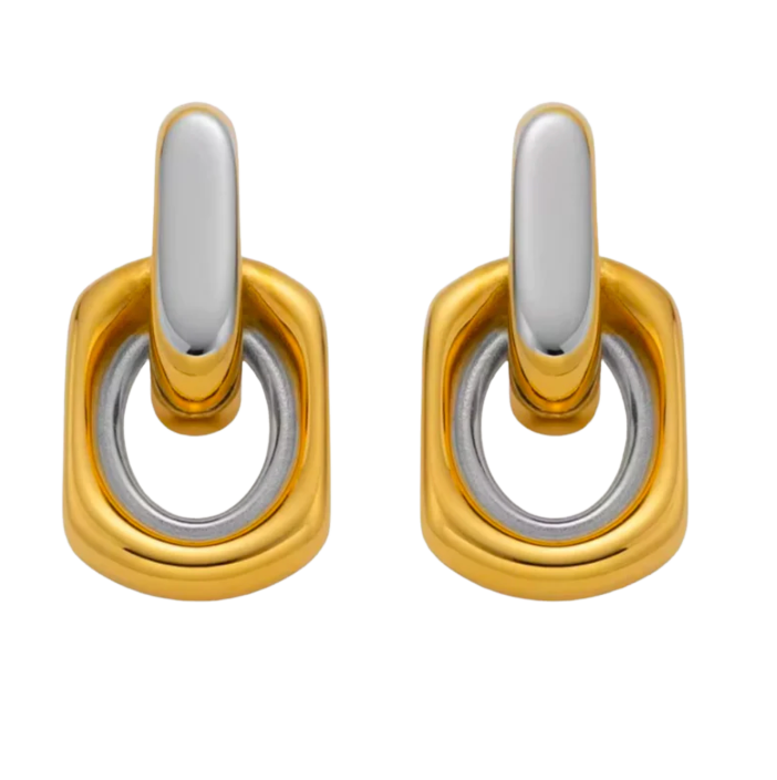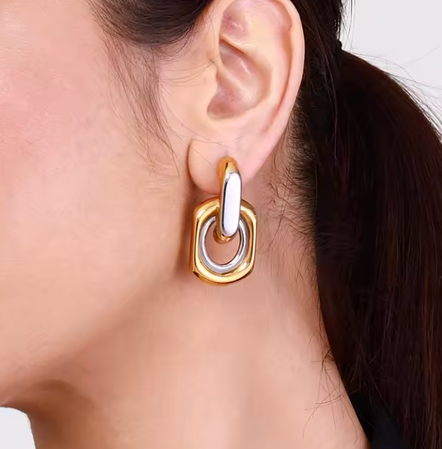Introducing the Duo Link Hoop Two Tone Earring, a Paperclip U shape design with a chic retro and modern vibe. Perfect for day to night wear, this timeless staple is double plated gold and silver, hypoallergenic, surgical steel post, and waterproof. Say hello to your new go-to earring!