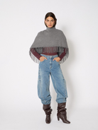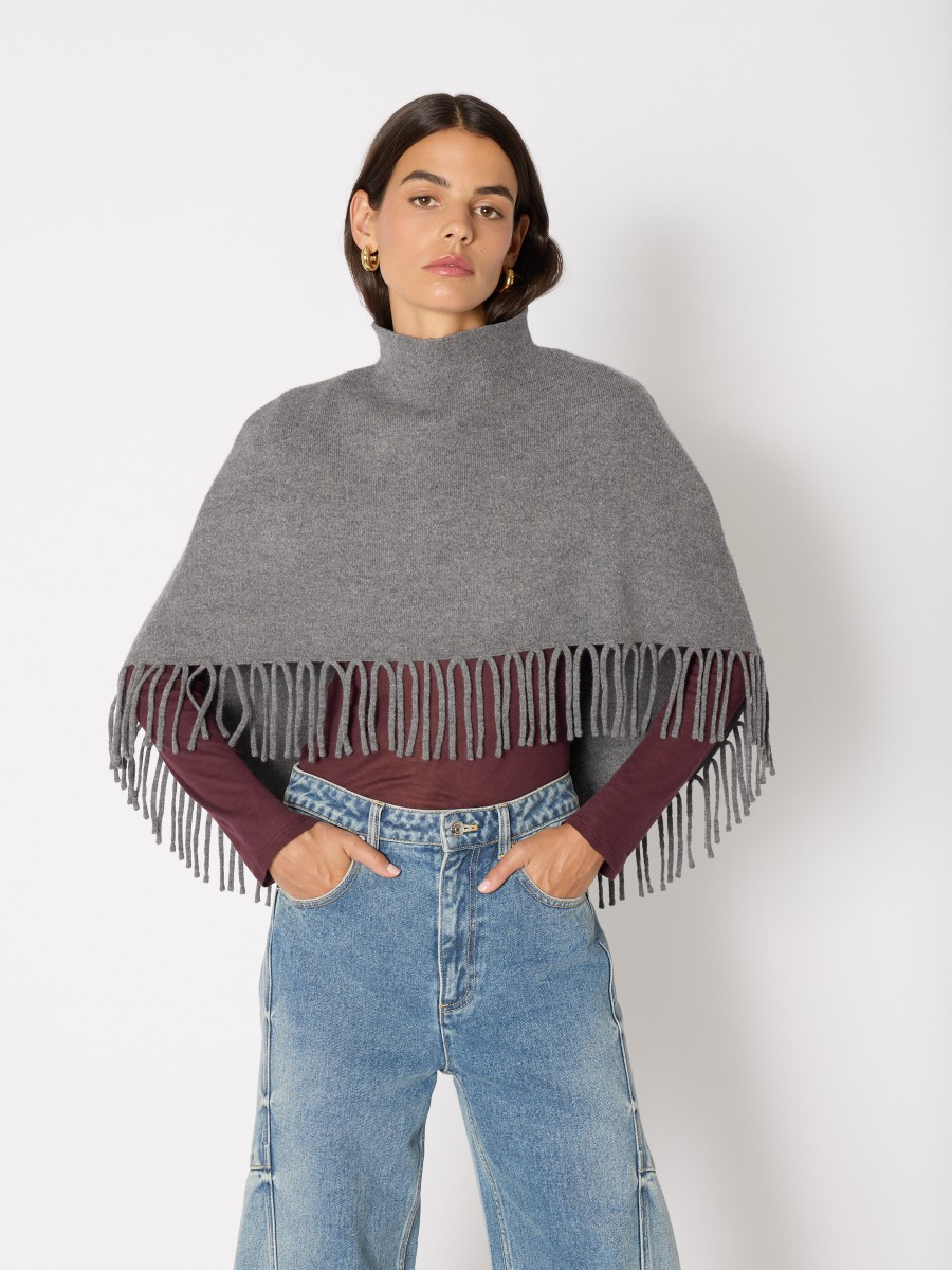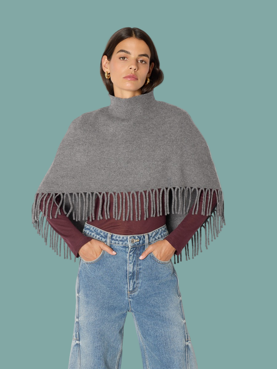 Stay cozy and stylish with the Marmo Wool Poncho. Featuring a high collar for extra warmth and fringe details along the bottom, this poncho adds a relaxed yet chic touch to any outfit. Perfect for layering on cool days, it offers comfort without compromising on casual style.