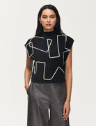 This sleeveless Tetra Ortho Top features a soft blend of wool, nylon, acrylic, polyester, and spandex for comfortable stretch and durability. The mock neck and orthogonal contrast piping add a modern touch to a casual silhouette, making it perfect for layering or wearing on its own throughout the day.