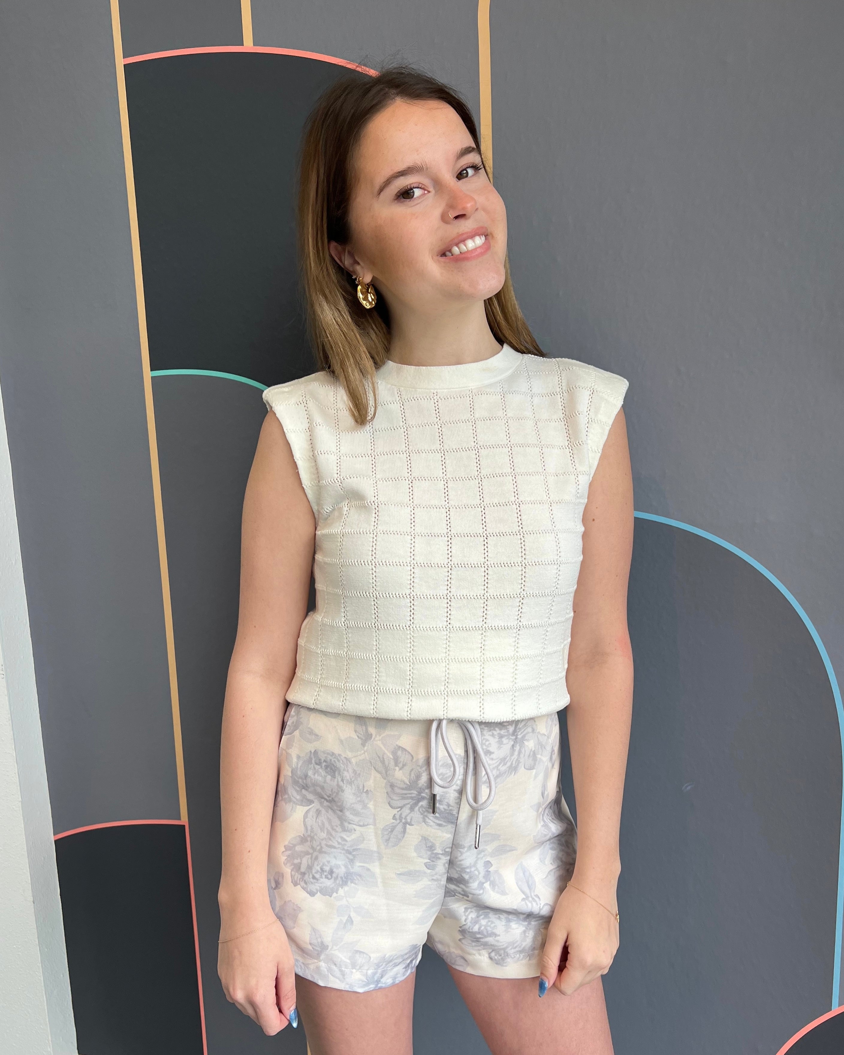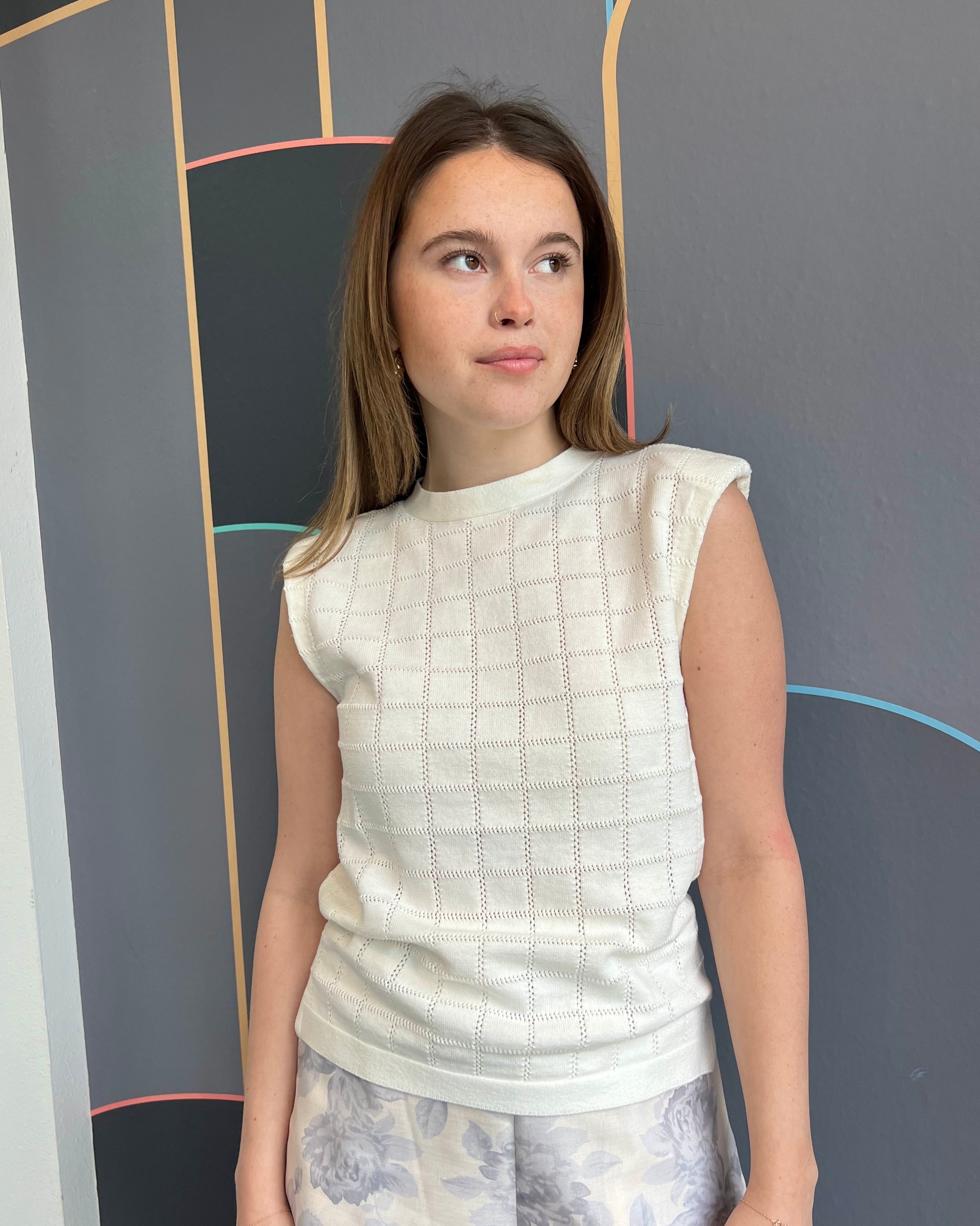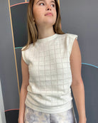 Checkered knit sleeveless sweater