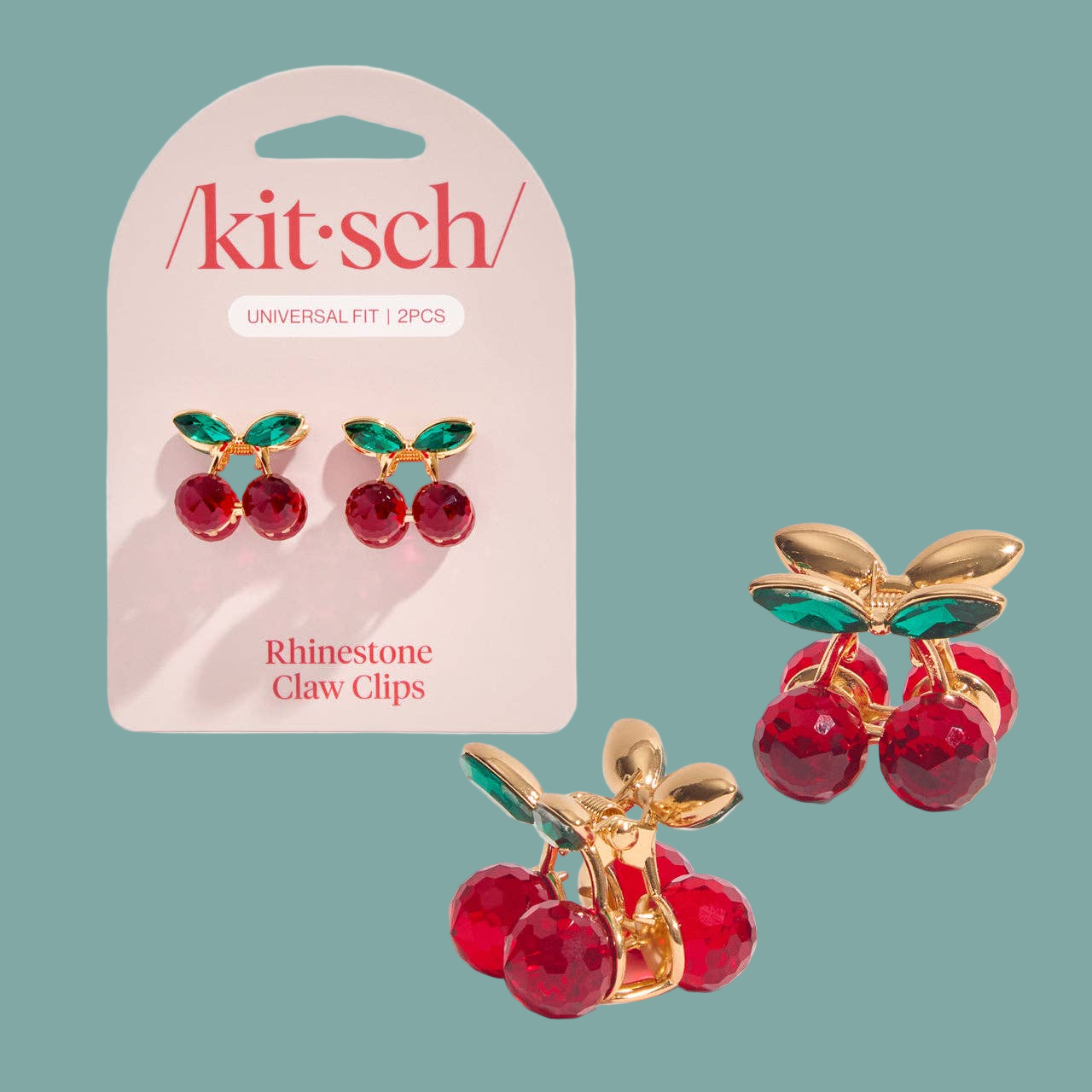 Mini Rhinestone Claw Clips 2pc Set - Cherry