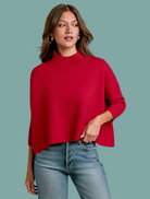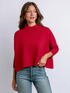 Oversized boxy sweater with fitted rib mock neck & 3/4 sleeves
