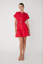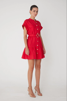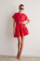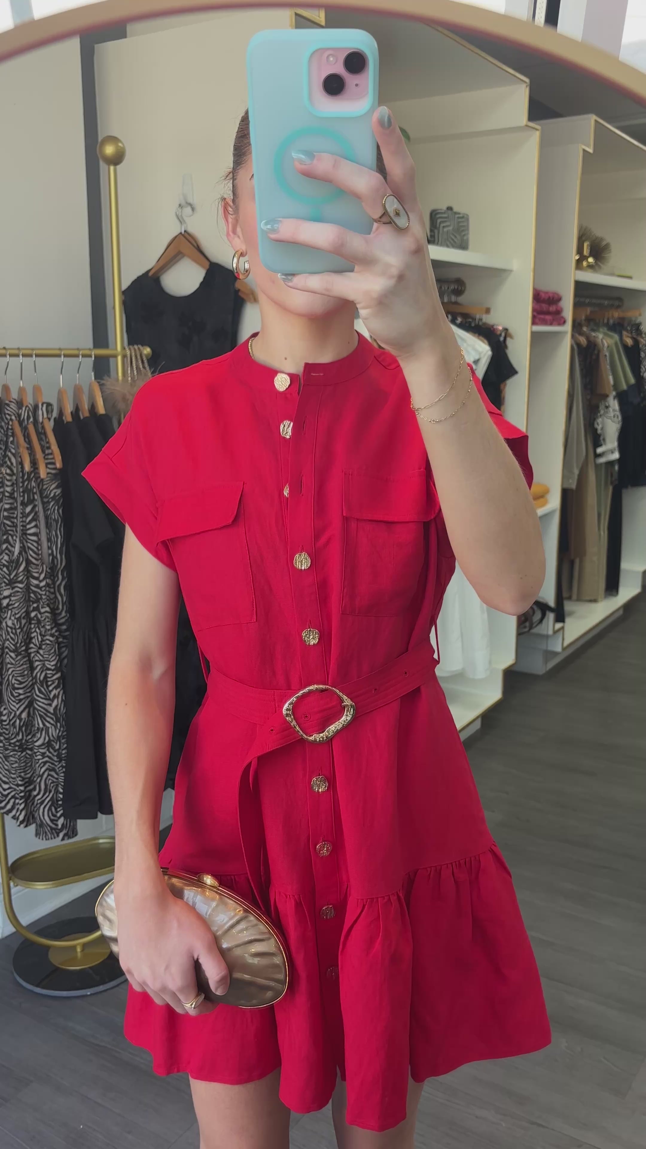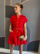 Make a statement in the Albany Dress, a stunning cherry red piece that effortlessly transitions from day to night. Gold-accented buttons add a touch of refined sophistication, while the playful silhouette keeps things fresh and modern. Pair it with flats for relaxed elegance or dress it up with heels for evening drama. Whether you're heading to brunch or a special event, this versatile dress delivers the perfect blend of bold and polished.