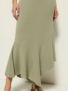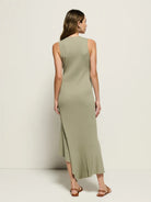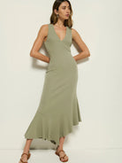 Sophisticated, chic, and beautifully crafted, the Carmel Dress is where minimal effort meets maximum impact. Made in an organic ribbed cotton, this form-fitting midi features a bra-friendly v-neckline, seamed tulip silhouette, and raw edge flutter hem. This one comes in Herb.