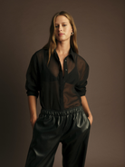 Add a touch of flirtatious elegance to your wardrobe with the Hugh Sheer Blouse. This classic button-down features a delicate sheer fabric that playfully reveals just enough, making it perfect for layering or wearing solo on a sunny day. Its timeless style pairs effortlessly with jeans or skirts, bringing a fresh twist to your everyday look.