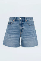 Expertly crafted for ultimate comfort and style, Kennedy Mid Rise Short in Central Vintage is a true crowd pleaser. With a relaxed fit, medium length, and signature comfort stretch denim, this classic medium blue wash features vintage-inspired fading and a distressed frayed hem.