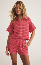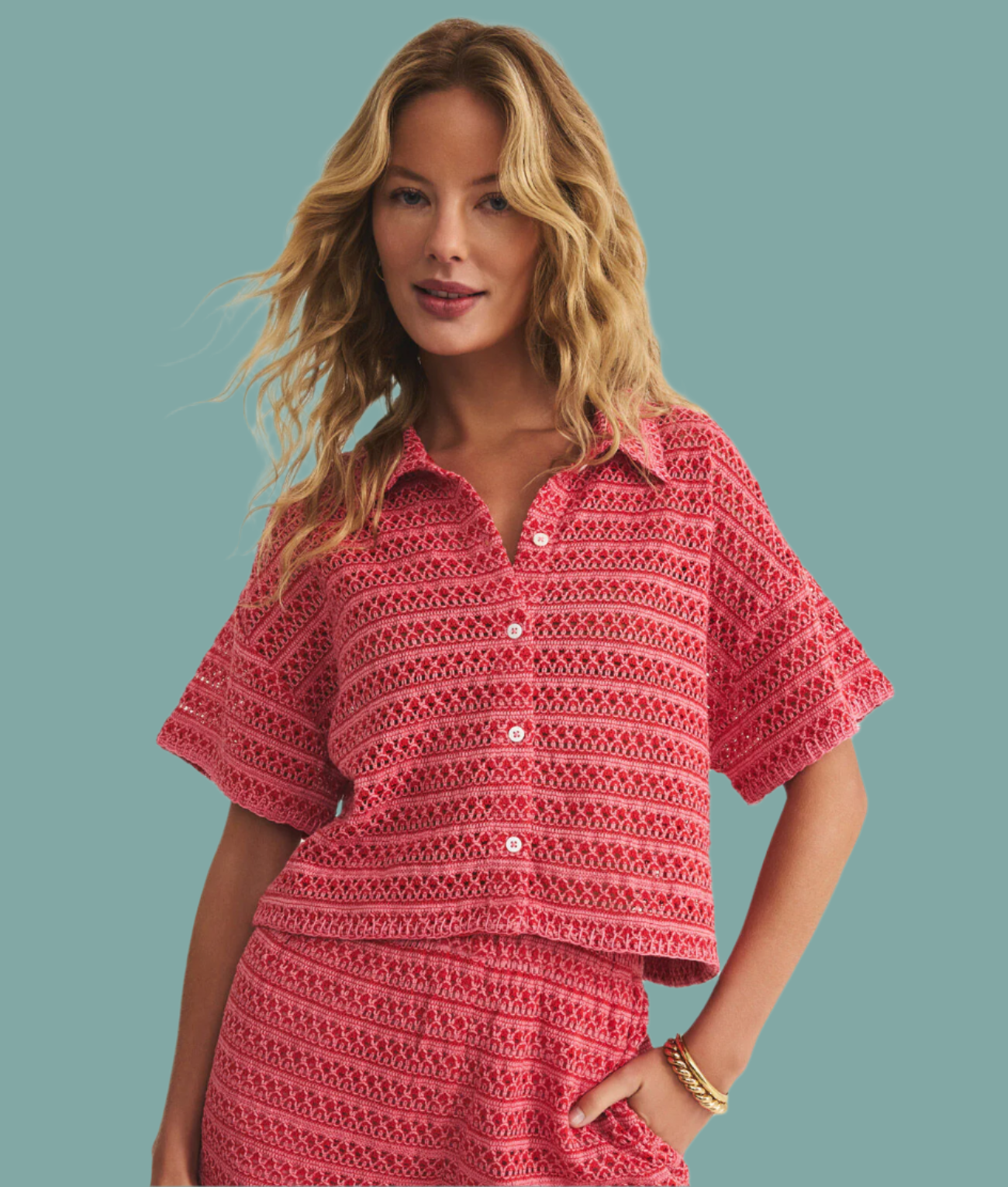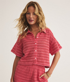Textured and one-of-a-kind, this woven button-up brings vintage charm to any look. A cropped, boxy fit and blanket stitch details add the perfect finishing touch.