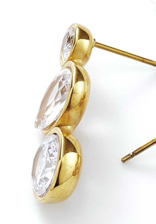 Sparkle with style in our Organic Diamond Drop Earrings. Channel set CZ stones & 18K gold drops spread light, while the concave fit & hypoallergenic steel keep you comfy. Classic butterfly closure makes them easy to wear for a lifetime of everyday & all-night glamour.