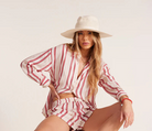 This oversized shirt is crafted from woven cotton with subtle stripes and a breezy, relaxed fit. Wear it open over swim, buttoned up with the matching shorts, or tied at the waist-it's the ultimate warm-weather layer with effortless ease.