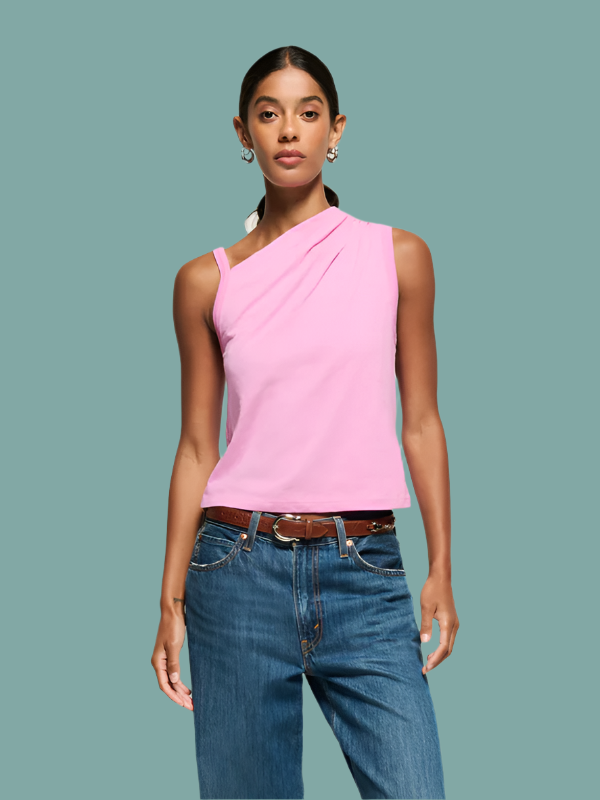 She’s chic and uncomplicated, meet the Quin Asymmetrical Tank. Made in a Pima Cotton, this asymmetrical silhouette features a single shoulder strap and elegantly gathered bodice. This one comes in Dahlia.