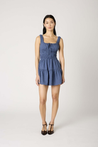 The Salt Dress channels a blend of nostalgic charm and playful ease. This warm-weather muse features a ruched bodice with a flattering scoop neckline and front-tie detail. The skirt flows into a flouncy, tiered silhouette that moves with ease.