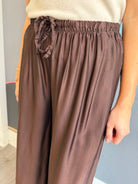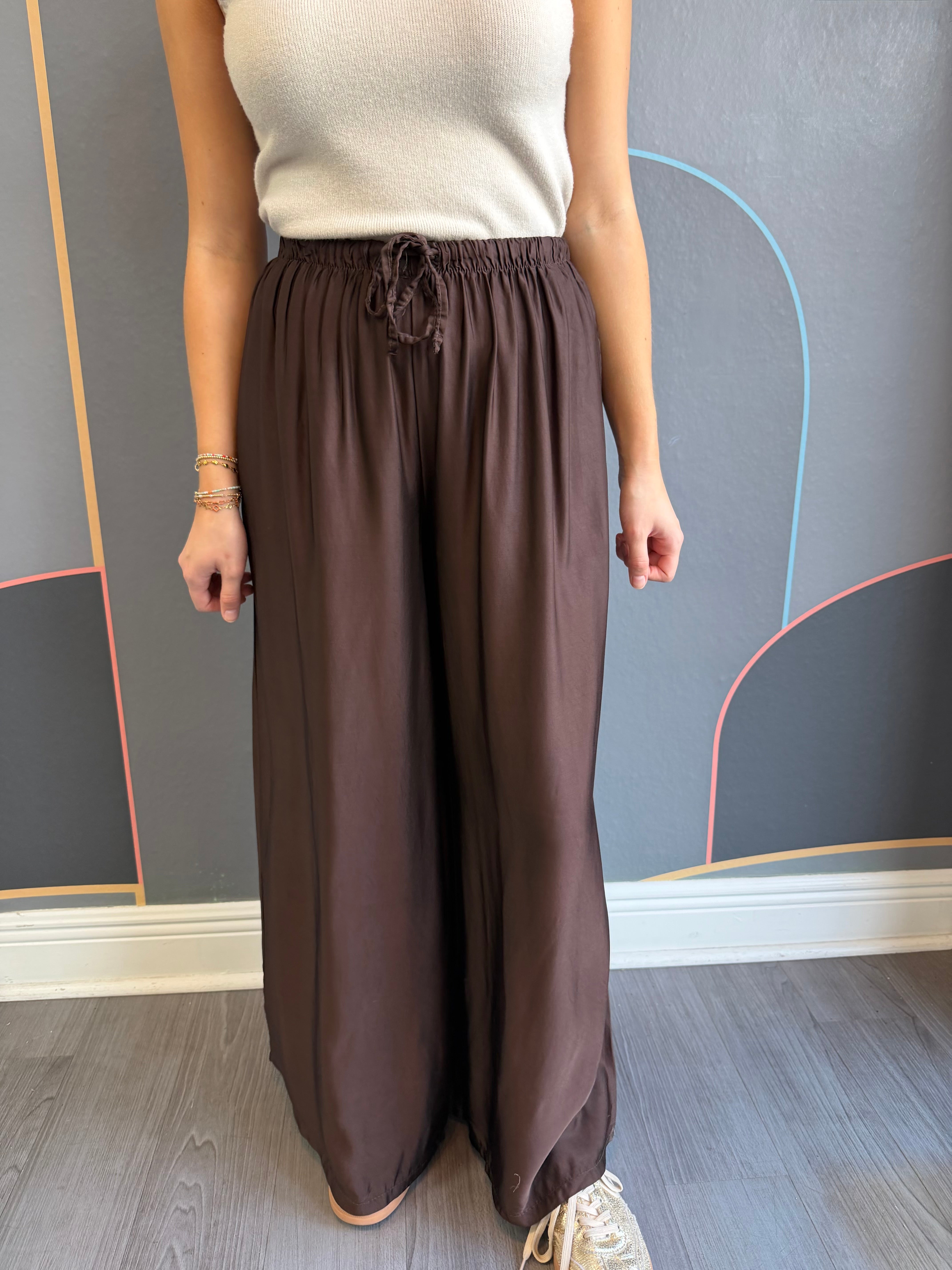 UPGRADE YOUR WARDROBE WITH OUR SILKY WIDE LEG PANTS. MADE FROM HIGH-QUALITY, SILKY MATERIAL, THESE PANTS OFFER A LUXURIOUS FEEL AND A FLATTERING WIDE LEG DESIGN. ENHANCE YOUR STYLE WITH COMFORT AND SOPHISTICATION. PERFECT FOR ANY OCCASION.